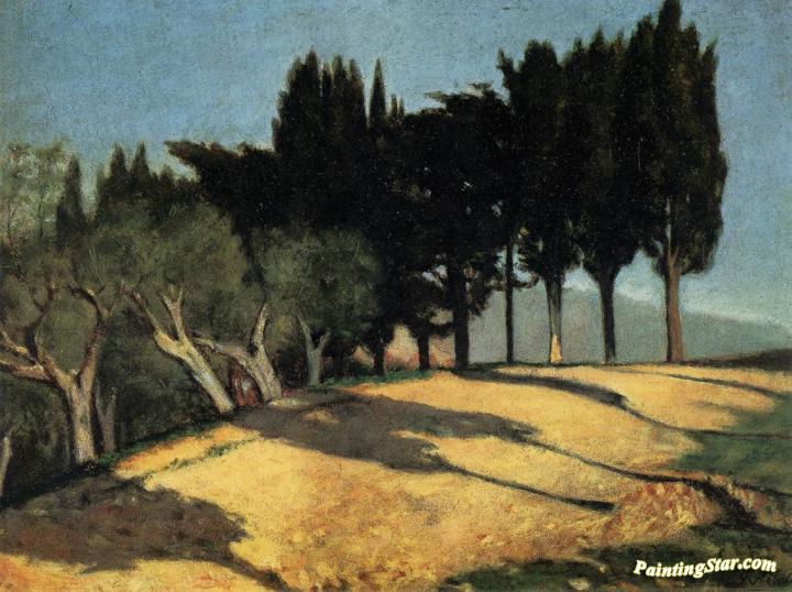 Country Road with Cypresses, Art Painting by Giuseppe Abbati