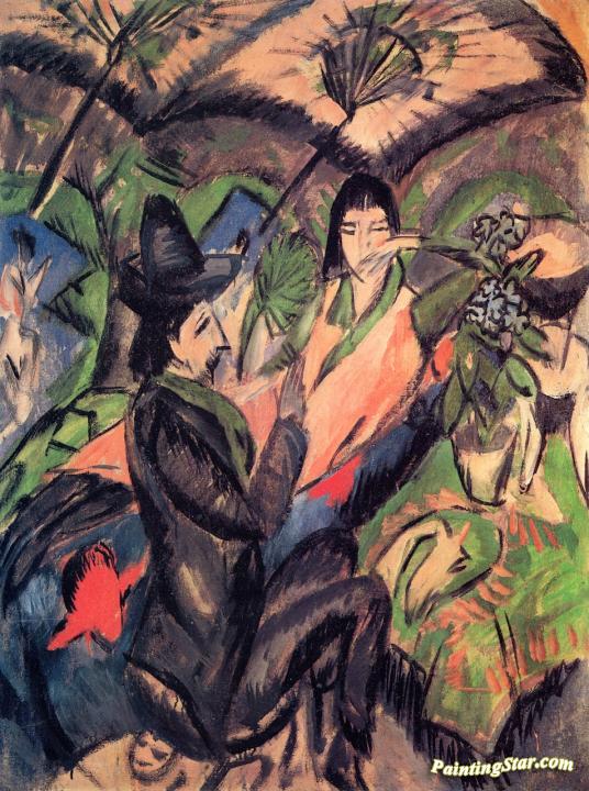 Couple under a Japanese Umbrella, Art Painting by Ernst Ludwig Kirchner