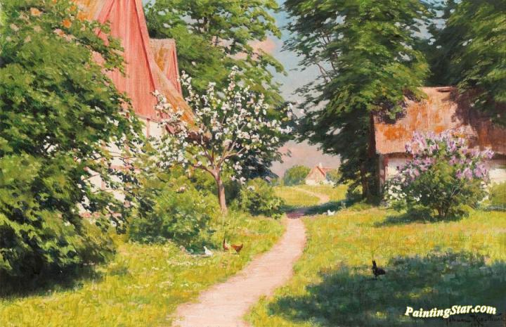 Courtyard by pecking hens, Art Painting by Johan Krouthén