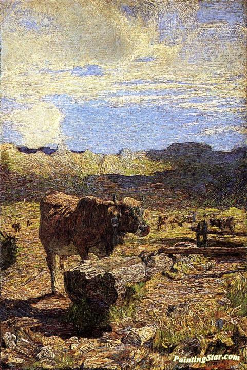 Cow at a Water Trough, Art Painting by Giovanni Segantini