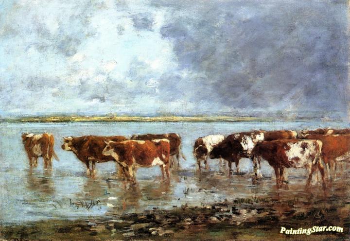 Cow at Pasture, Valley of the Touques, Art Painting by Eugène-Louis Boudin