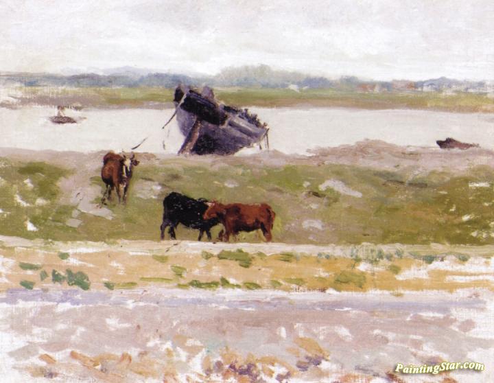 Cows by a Boat, Etaples, Art Painting by Henri Le Sidaner