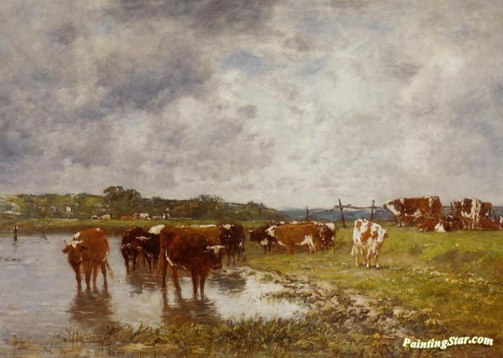 Cows in a Meadow on the Banks of the Toques, Art Painting by Eugène-Louis Boudin