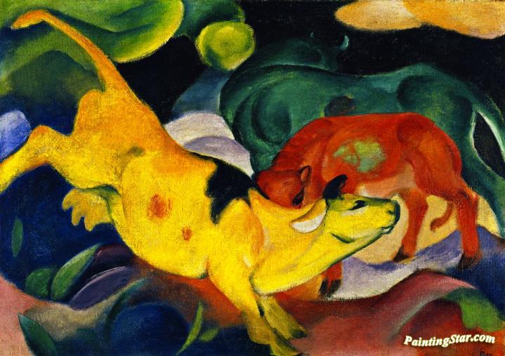 Cows, Red, Green, Yellow, Art Painting by Franz Marc