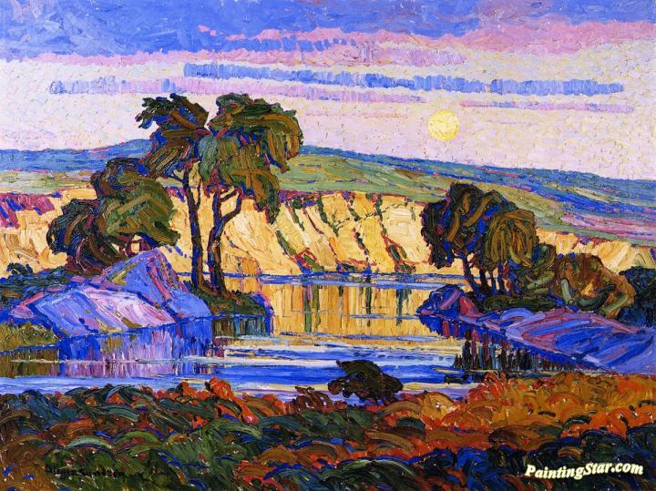 Creek At Moonrise, Art Painting by Birger Sandzen