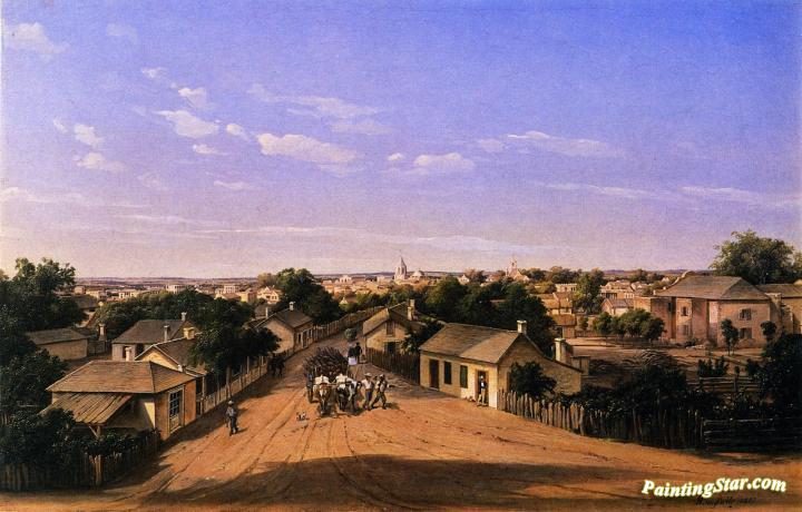 Crockett Street Looking West, San Antonio De Bexar, Art Painting by Herman Lungkwitz