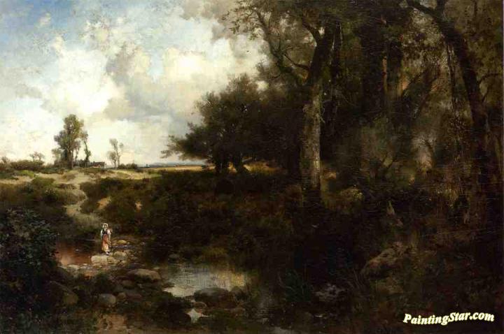 Crossing the Brook Near Plainfield, New Jersey, Art Painting by Thomas Moran