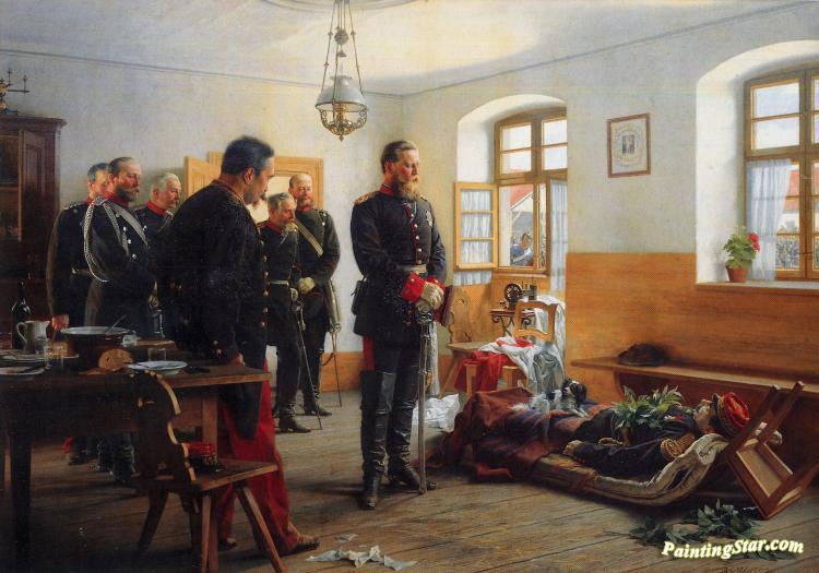 Crown Prince Frederick Wilhelm Contemplating The Corpse Of French General Abel Douay, Art Painting by Anton Alexander von Werner