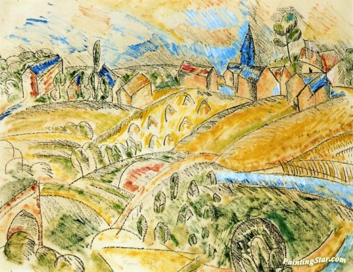 Cubist Landscape With Haystacks, Art Painting by Raoul Dufy