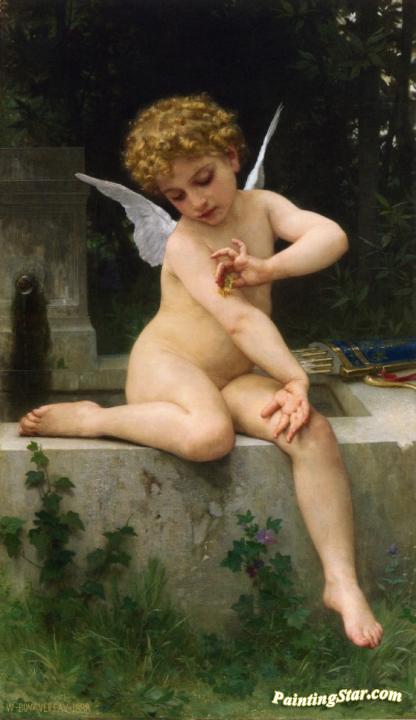 Cupid with Butterfly, Art Painting by William Adolphe Bouguereau