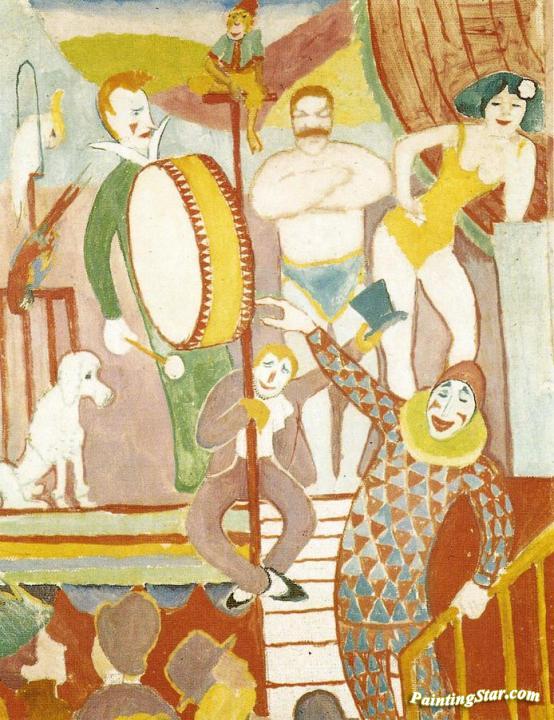 Curcus Picture II: Pair of Athletes, Clown and Monkey, Art Painting by August Macke