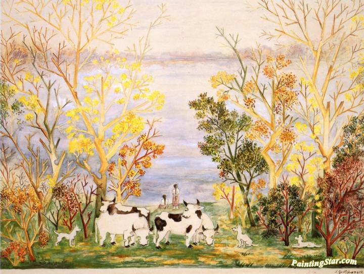 Curtain Design For La Fiore De Sorotchinsky, Art Painting by Natalia Goncharova