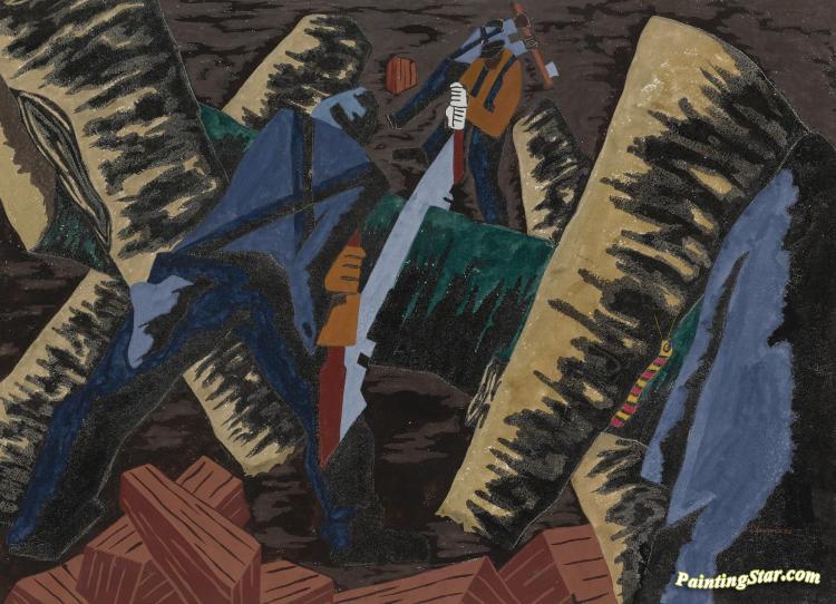 Cutting Logs, Art Painting by Jacob Lawrence