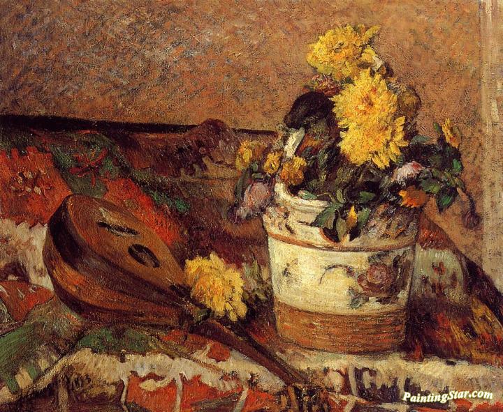 Dahlias and Mandolin, Art Painting by Paul Gauguin