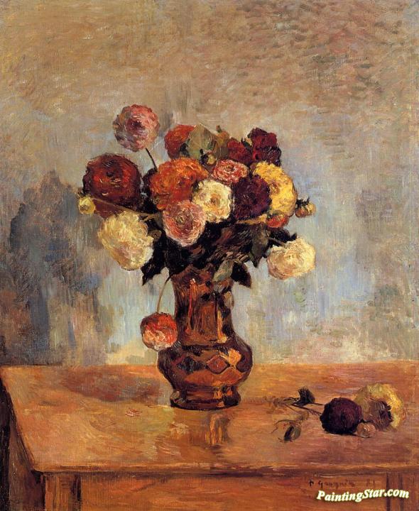 Dahlias in a Copper Vase, Art Painting by Paul Gauguin