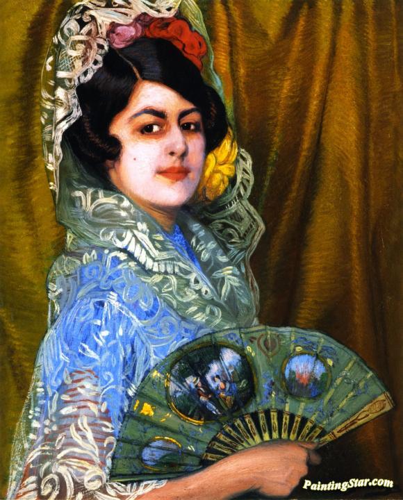 Dama Con Abanico, Art Painting by Ignacio Zuloaga y Zabaleta