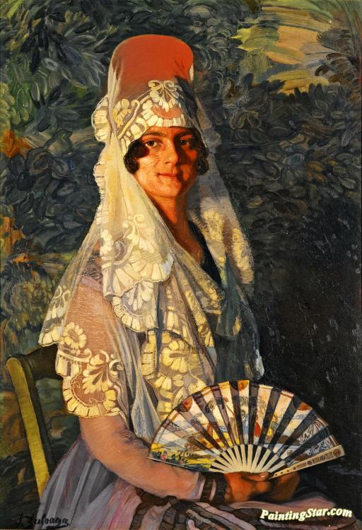Dama Con Mantilla Y Abanico, Art Painting by Ignacio Zuloaga y Zabaleta