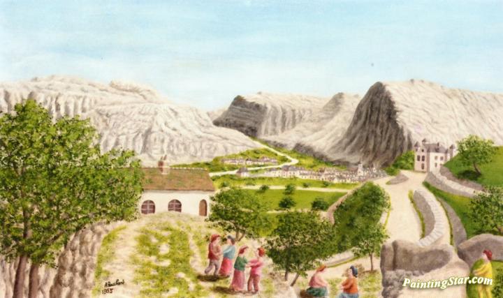 Dance Scene In A Mountain Landscape, Art Painting by André Bauchant