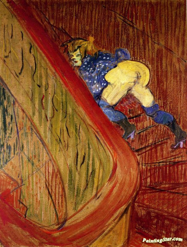 Dans L'excalier De La Rue Des Moulins, Art Painting by Henri de Toulouse-Lautrec