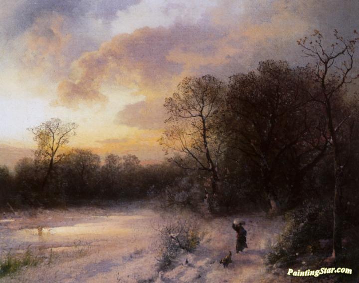 Daybreak on a Snowy Morning, Art Painting by Herman Herzog