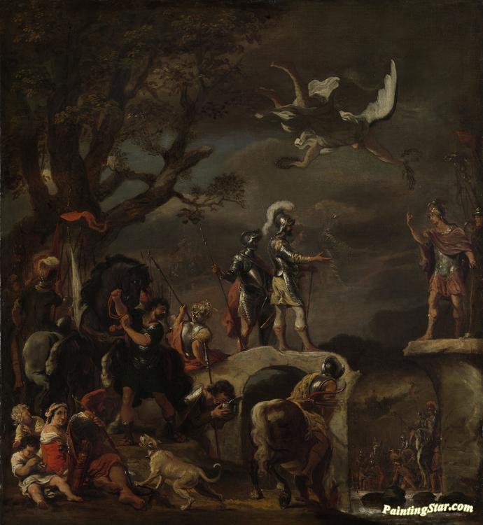 De Vredesonderhandelingen Tussen Claudius Civilis En Quintus Petillius Cerealis Op De Afgebroken Brug, Art Painting by Ferdinand Bol