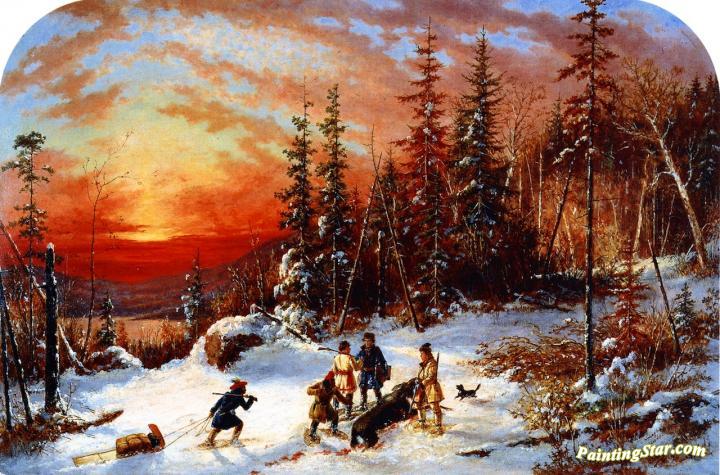 Death of the Moose at Sunset, Lake Famine South of Quebec, Art Painting by Cornelius Krieghoff