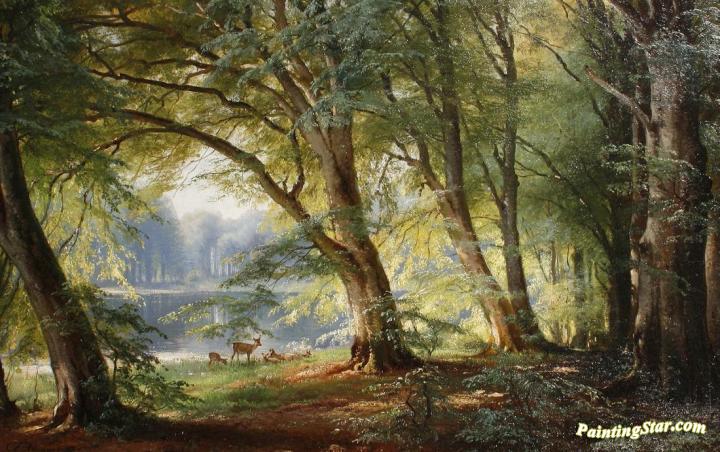 Deer Beside A Lake, Art Painting by Carl Frederik Peder Aagaard