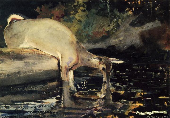 Deer Drinking, Art Painting by Winslow Homer
