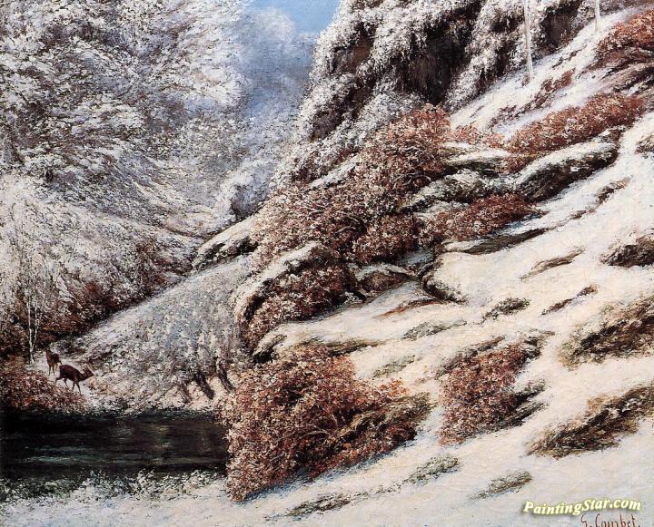Deer in a Snowy Landscape, Art Painting by Gustave Courbet