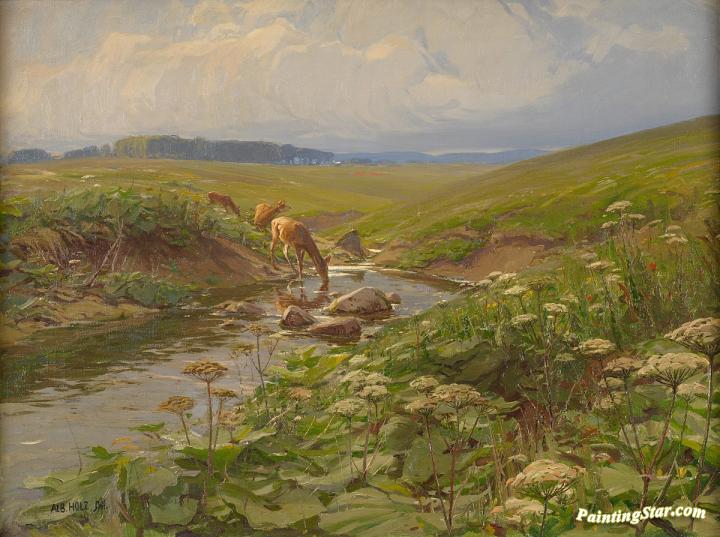 Deer On A Stream, Art Painting by Albert Holz