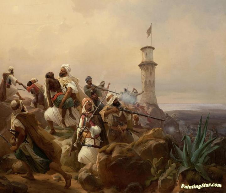 Defending a Hill Fortification, Morocco, Art Painting by Niels Simonsen
