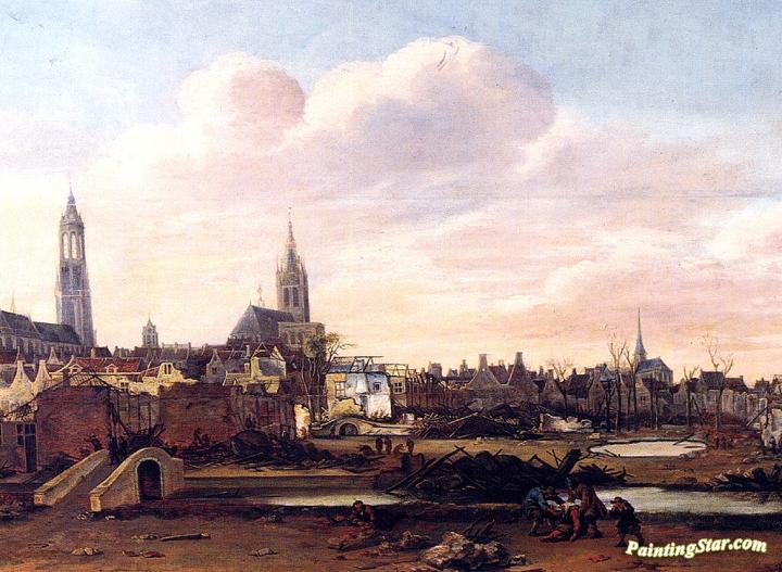 Delft after the explosion of the gunpowder-storage, Art Painting by Egbert van der Poel