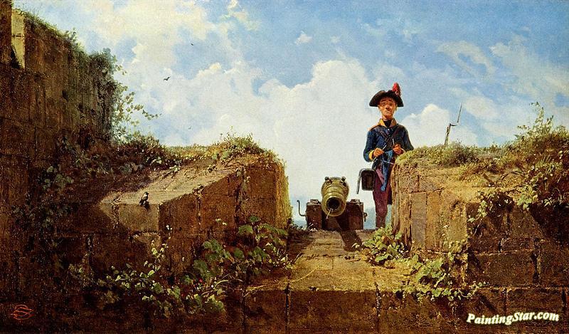 Der Strickende Vorposten, Art Painting by Carl Spitzweg