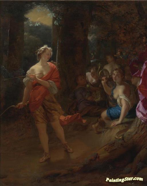 Diana and her Nymphs in a Clearing, Art Painting by Godfried Schalcken