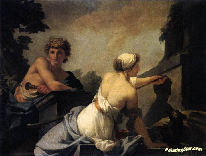 Dibutades Tracing the Portrait of a Shepherd, Art Painting by Jean Baptiste Regnault