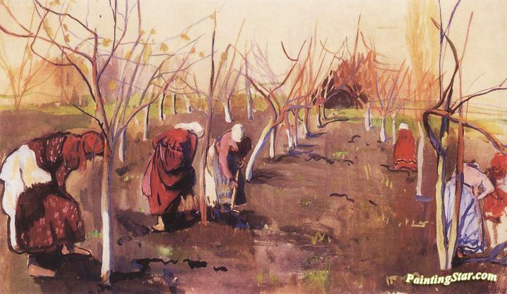 Digging trees in the garden, Art Painting by Zinaida Serebriakova