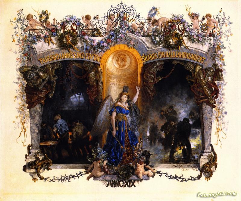 Diploma For The Fiftieth Anniversary Of The Heckmann Factory, Art Painting by Adolph von Menzel