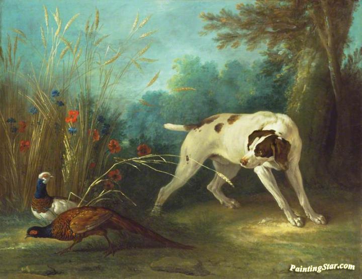 Dog Pointing Pheasants, Art Painting by Jean-Baptiste Oudry