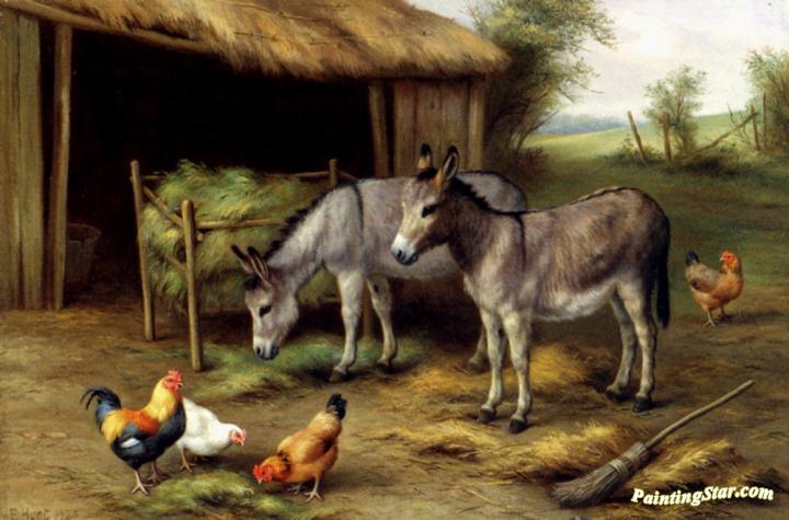 Donkeys And Poultry, Art Painting by Edgar Hunt