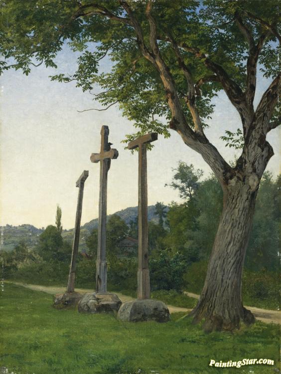 Drei Kreuze Am Wiesenweg Three Crosses Along A Country Lane, Art Painting by Robert Zund