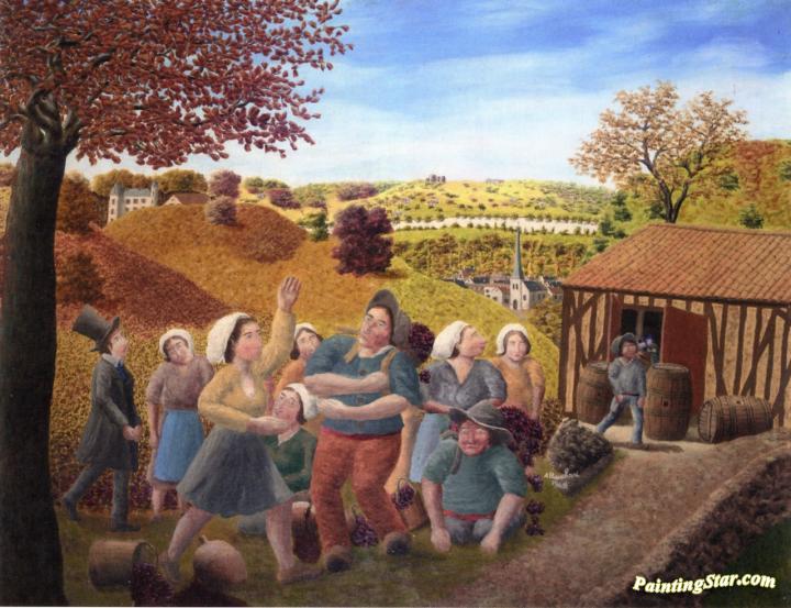 Drunken Grape Harvesters, Art Painting by André Bauchant