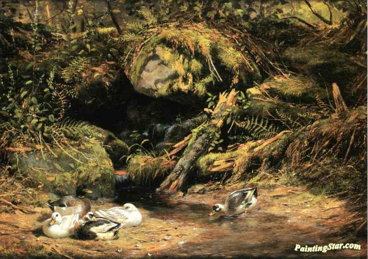 Ducks at the Spring Head, Art Painting by Arthur Fitzwilliam Tait