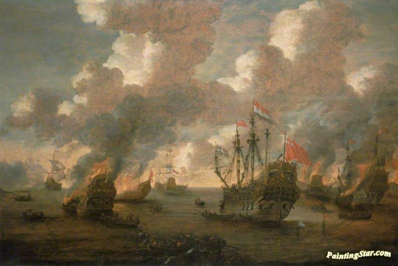 Dutch Attack On The Medway, 9-14 June 1667, Art Painting by Peter van den Velde