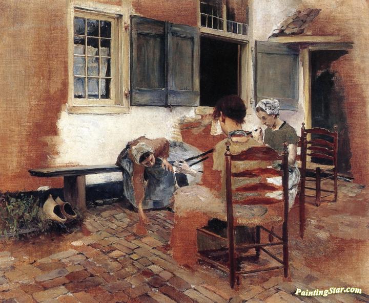 Dutch Courtyard Scene: Study For Venetian Bead Stringers, Art Painting by Robert Frederick Blum