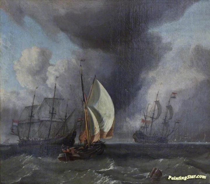 Dutch Shipping in Choppy Seas, Art Painting by Ludolf Bakhuizen