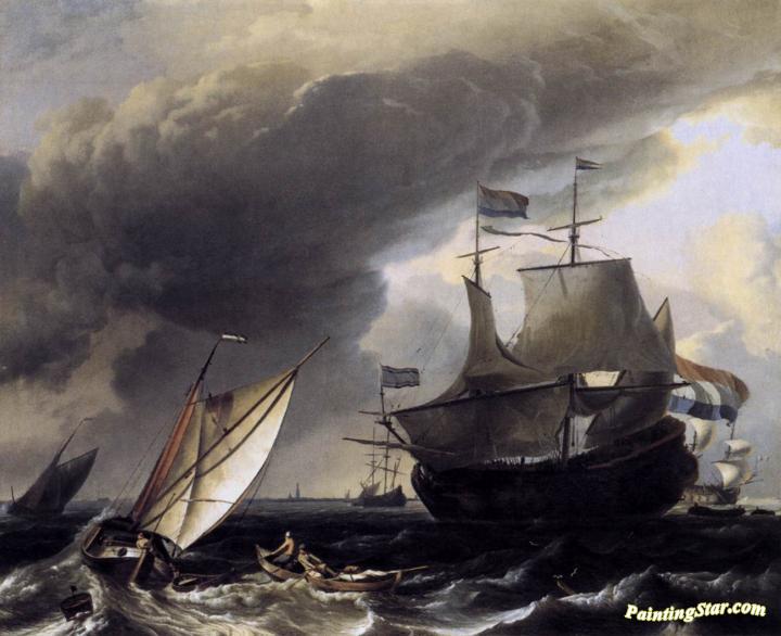 Dutch Vessels on the Sea at Amsterdam, Art Painting by Ludolf Bakhuizen