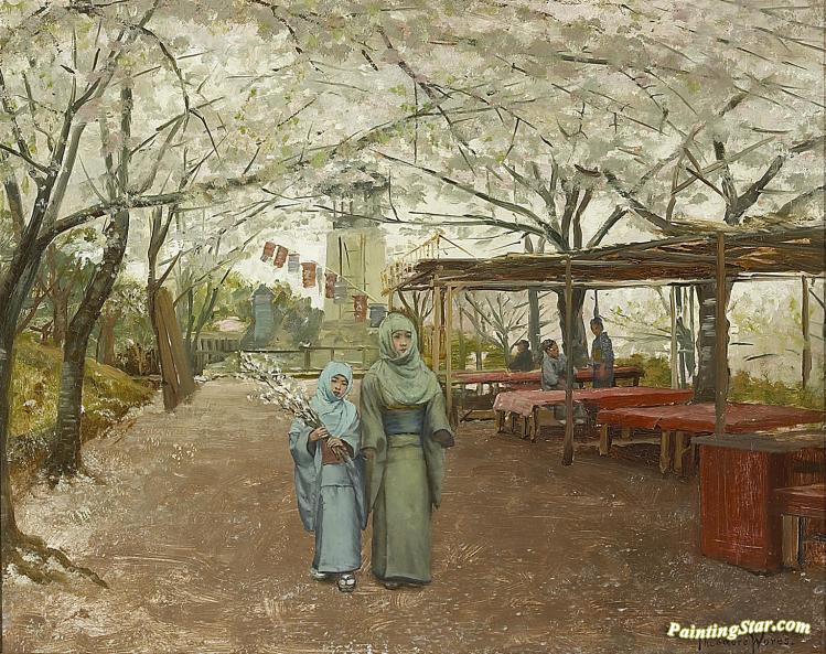 Early Cherry Blossoms, Nogeyama, Yokohama, Art Painting by Theodore Wores