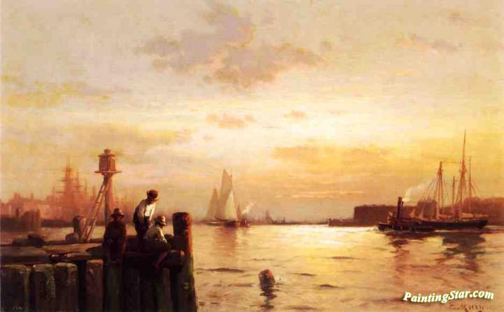 Early Dawn, New York Harbor, Art Painting by Edward Moran