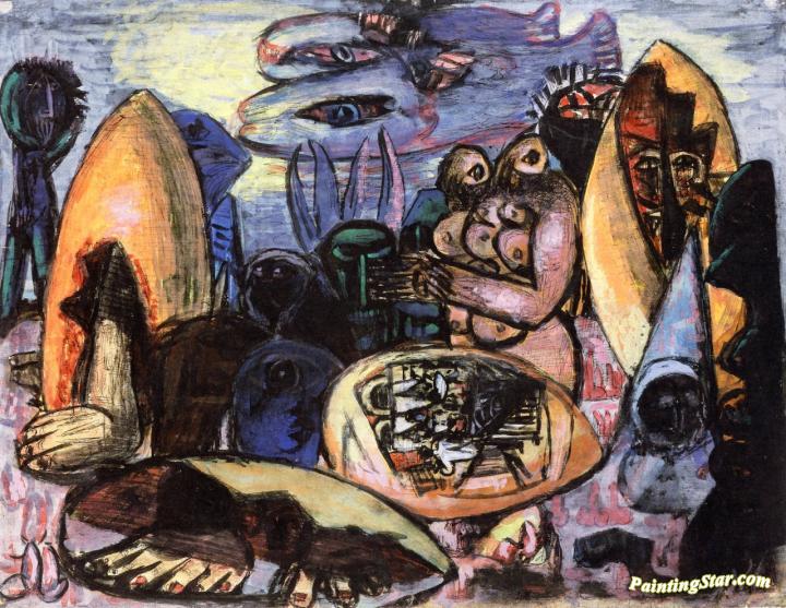 Early Men - Primeval Landscape, Art Painting by Max Beckmann