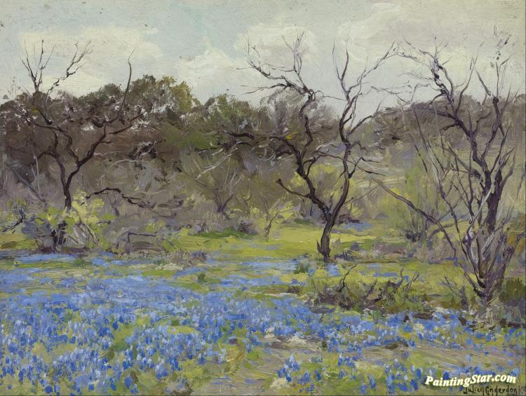 Early Spring - Bluebonnets And Mesquite, 1919, Art Painting by Julian Onderdonk